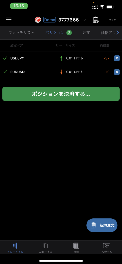 現在保有中のポジションが表示されます。
