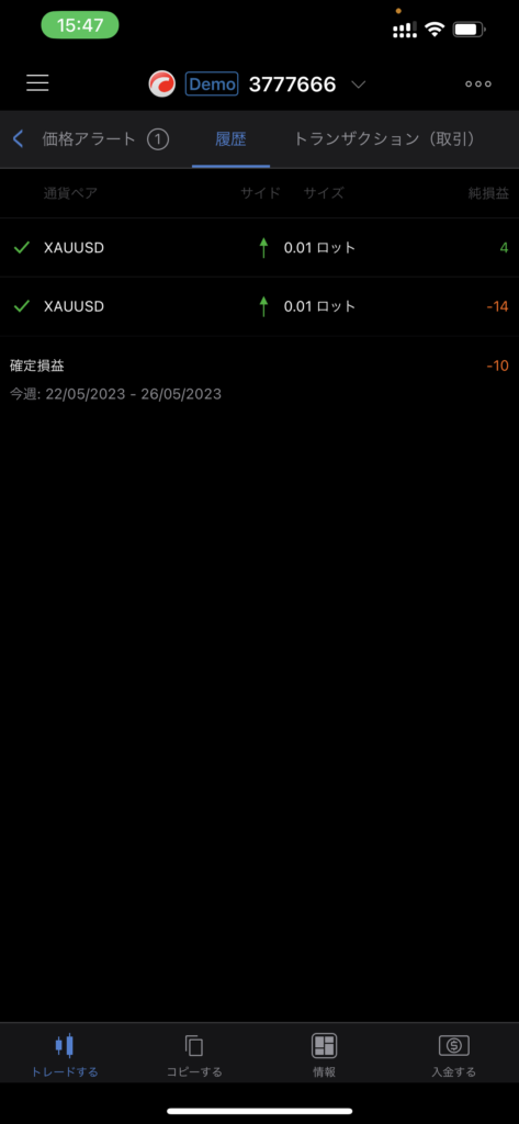 これまでの取引履歴が表示されます。