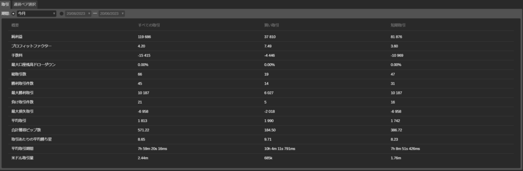 - 平均取引:すべてのトレードの平均利益