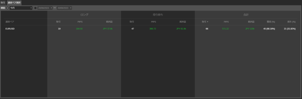 - 合計獲得ピップ数:ストラテジーが獲得したPipsの総数