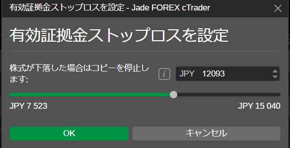この設定はいわゆる「コピー口座内の有効証拠金ベースの逆指値」です。
