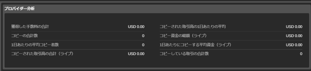 アカウントと戦略プロファイルセクションで述べた標準的なチャートと表の他に、戦略プロファイルの中の[プロバイダー分析セクション]にあなたの個人的なストラテジの詳細が含まれています。
