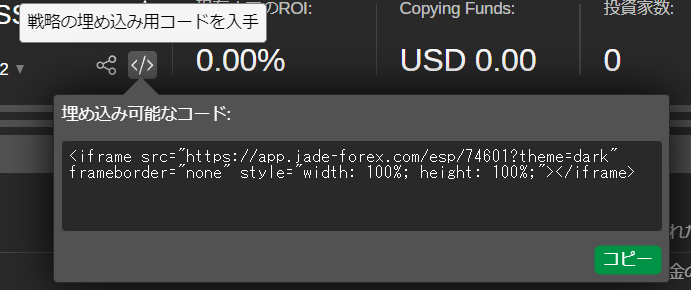 プロバイダーは、共有オプションで提供される埋め込みコードを使用して、ストラテジーを埋め込んでウェブ上で公開することができます。