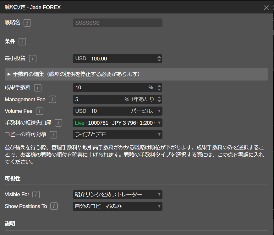 戦略プロバイダーは、自分のストラテジーの価値と、他の投資家がそのストラテジーに支払っても良いと思う金額に応じて、コピーにかかる手数料を設定することができます。