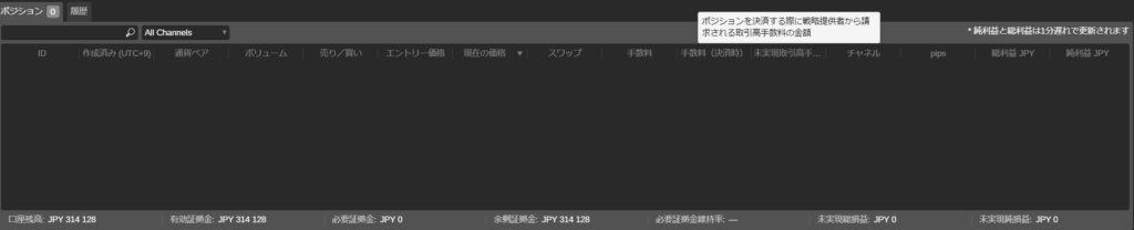 未実現出来高手数料「ポジション」タブで確認できます。
