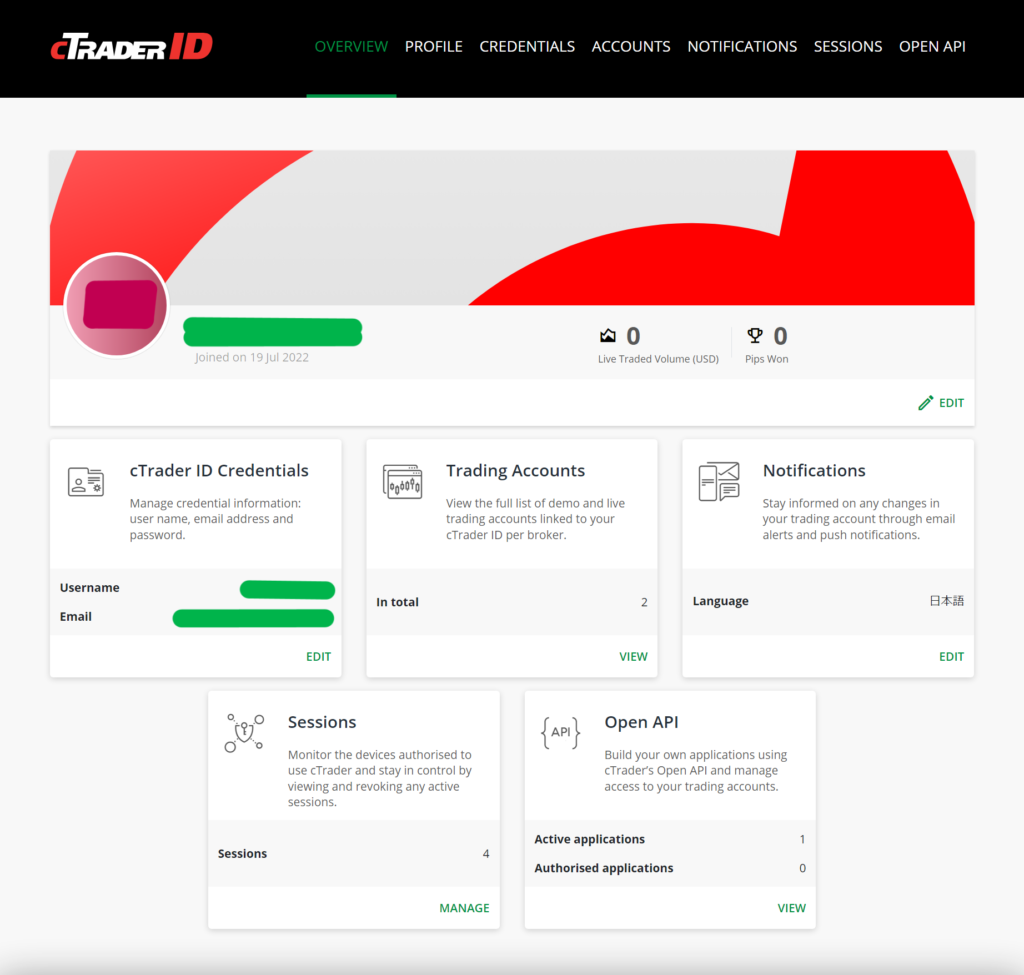 自動的に新しいcTrader IDプロフィールにサインアップされ、メールアドレスも自動的に認証されます。