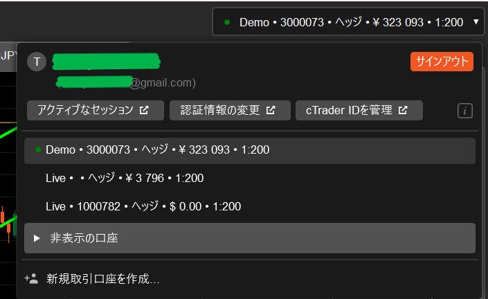 cTraderはデモ取引口座とライブ取引口座をサポートしています。このセクションでは、新規取引口座の開設、取引口座間の切り替え、取引口座の種類などについて説明します。
