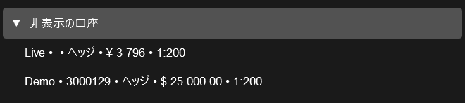 現在使用していない取引口座をメイン口座リストから非表示にすることができます。