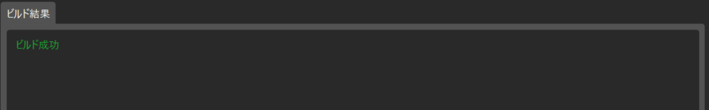 コードエディタの真下にある「ビルド結果」ウィンドウには、「ビルド」アクションの結果が表示されます。ビルドが成功すると、以下のように表示されます。