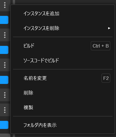 | インスタンスを削除 | cBotやインジケーターのインスタンスを選択して削除する。 |