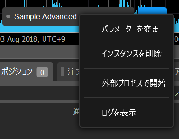 「外部プロセスで開始」をクリックすると、ctrader-cliが起動します。起動すると、サービスは元々アタッチされているチャート上で選択したインスタンスを実行します。